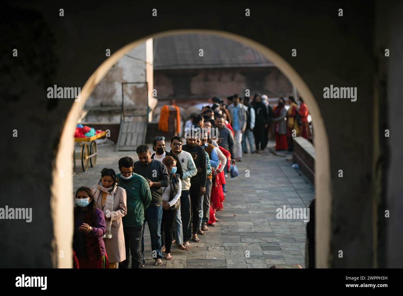 Kathmandu, Nepal. 08th Mar, 2024. Nepalese Hindu devotees line up